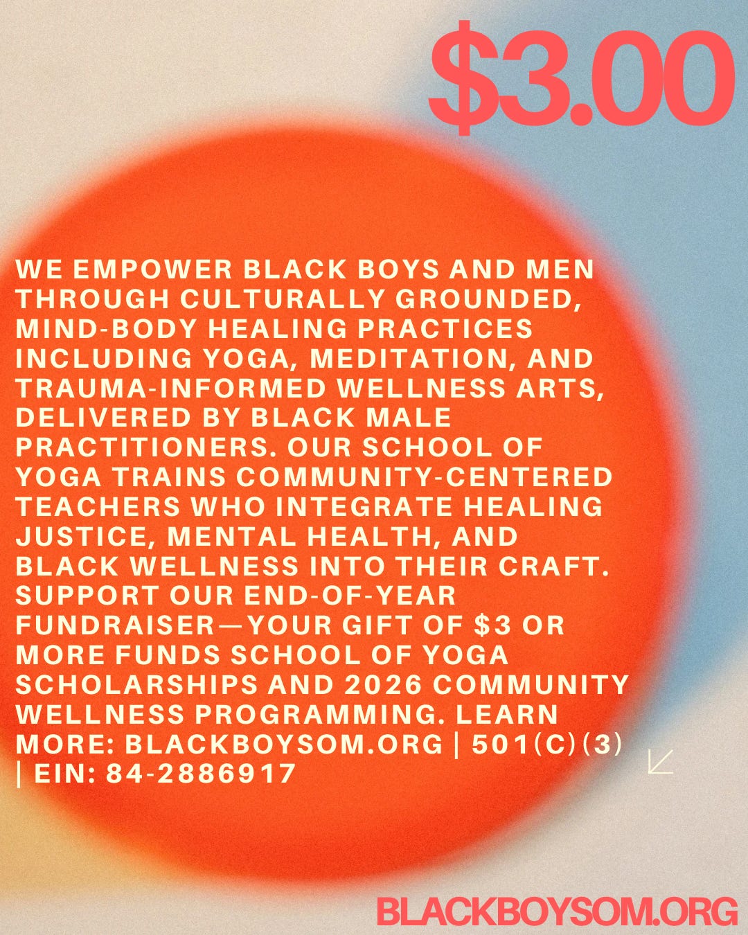 Black Boys OM Yoga is a meditative practice centered on Black healing and cultural grounding that honors the body as a sacred vessel for divine expression rather than a limitation to overcome. Rooted in the Krama lineage and Non-Dual Kashmir Shivaism, it weaves together intensive meditation, somatic movement, and trauma-informed wellness as tools for embodied liberation. The practice cultivates mind-body-spirit health through the disciplined work of sustained contemplation, precise inhabitation of the physical form, and devoted recognition of the divine presence within each practitioner, drawing from both the yogic principle of Ishvara Pranidana and the Yoruba understanding of personal divinity through Ori. Led by Black male teachers and practitioners, Black Boys OM Yoga serves as a pathway for Black people to awaken through yoga, remember their wholeness, and catalyze collective transformation rooted in their own lived experience and cultural wisdom.